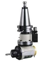 An Angle head, also known as a Angular Head, is a tool attachment that attaches to the end of a machine tool, such as a mill or drill, and allows the tool to operate at a 90-degree angle head to the machine's spindle.